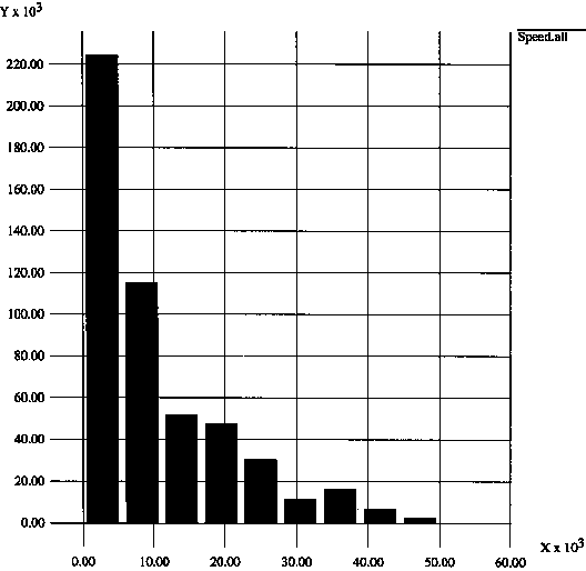 Figure 7 - Variation of Speed over 48 hours on 148 nodes. Histogram of the distribution of Speed over a 48 hour period on a network of 148 machines. These values were collected after every million instructions executed on our point of view node (at ATR), from all the other nodes in the network. This generated 504,589 values of Speed data, of which 188,594 (37%) were zero values.