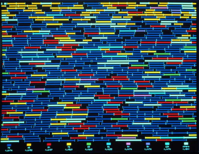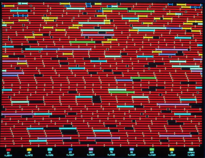 Figure 9: Evolutionary race between hosts and parasites in a soup of the Tierra program.