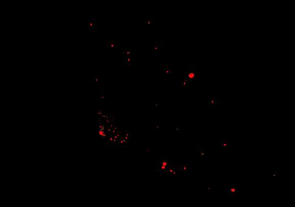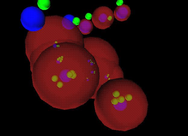 Figure 12: Two images from the VRML Visualization of Network Tierra (http://vrml.arc.org/tierra). This visualization represents the Tierra network environment though the ``eyes'' of the digital organisms themselves. Digital organisms are able to perceive conditions on the net by using the TPing sensory mechanism (sort of like echo location in bats). These images visualize the data provided by TPing.