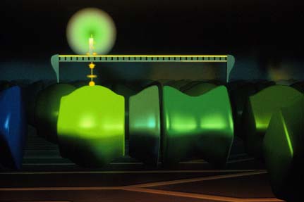 These are two images from the VRML Visualization of Network Tierra. This visualization represents the Tierra network environment though the ``eyes'' of the digital organisms themselves. Digital organisms are able to perceive conditions on the net by using the TPing sensory mechanism (sort of like echo location in bats). These images visualize the data provided by TPing.