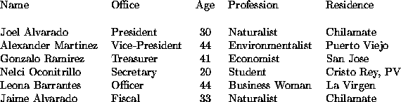 Membership in the Association is available to persons 16 years of age or older for a fee of 1,000 colones (approximately $7) and an annual membership fee, also 1,000 colones. The Association is managed by the Executive Committee which is elected every two years. Checks can only be signed by the President and Treasurer. The first members elected to the Executive Committee were:
